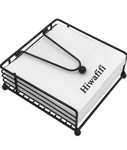 LOT 988 - New (lot of 2) Flat Napkin Holder for Table, Large Capacity Metal Black Napkin Holders for Kitchen Dining Tables & Countertops, Modern Cocktail Napkins Holder Dispenser for Indoor & Outdoor Use