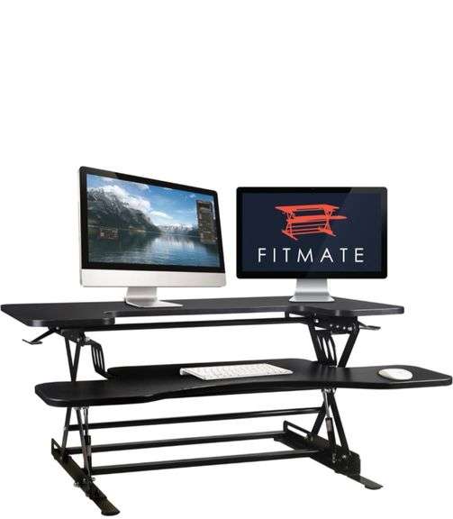 LOT 806 - New New Standing Desk - 36" Height Adjustable Stand Up Desk Computer Riser, Sit Stand Desk Elevating Desktop Fits Two Monitors (Black) opened box