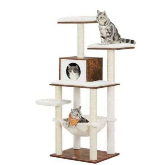 LOT 997 - New Feandrea WoodyWonders Cat Tree, Modern Cat Tower for Indoor Cats, 54.3-Inch Multi-Level Cat Condo, Ultra-Soft Plush, Scratching Posts, Hammock, Removable, Washable Cushions, Rustic Brown UPCT164X01