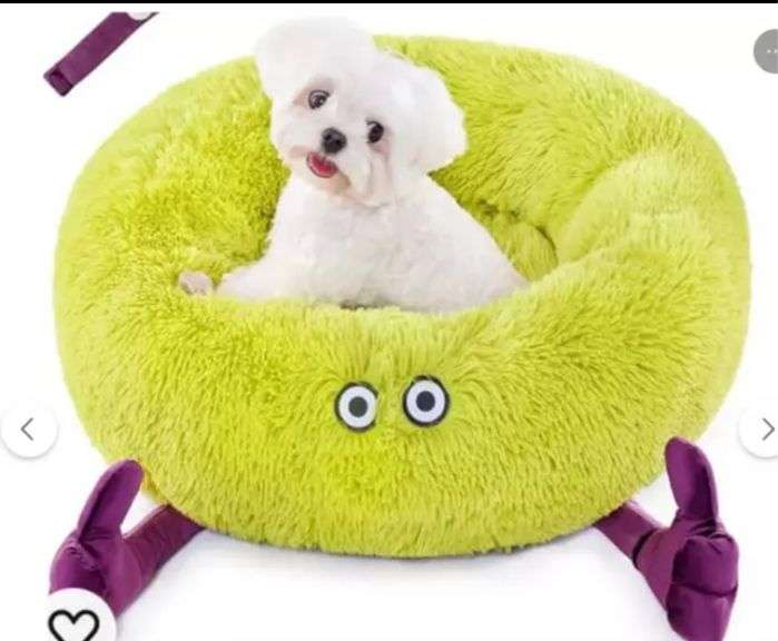 LOT 263 - New MOONCUBE Dog Bed Small Dogs Green Monster With Squeaky Toy Hands New Vacuum Seal,no ship, no hold