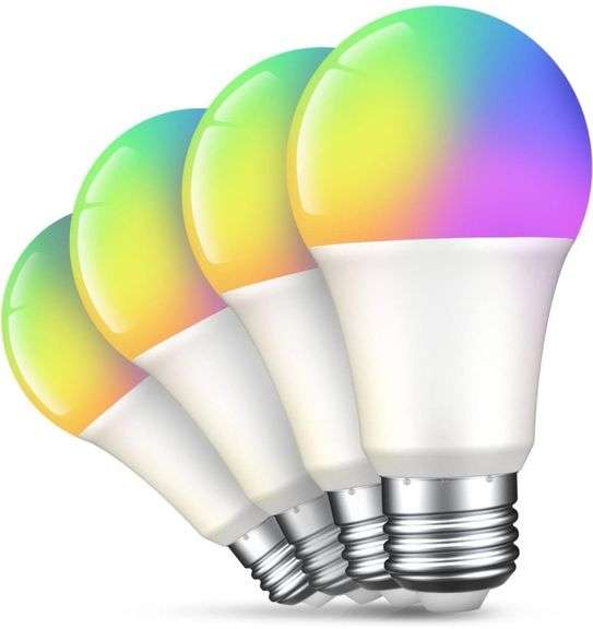 LOT 1067 - New Smart Light Bulbs, Color Changing Light Bulbs A19 E26 75W Equivalent, WiFi Light Bulbs Smart Bulbs Compatible with Alexa Google Home No Hub Required, Dimmable 2700K Warm White, 800 Lumens, 4 Pack