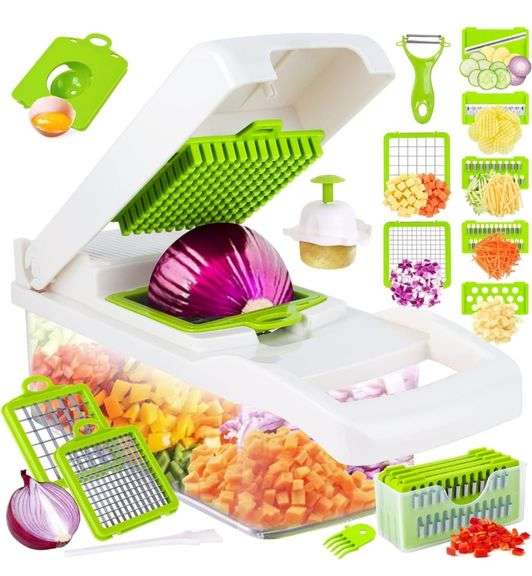 LOT 1167 - Vegetable Chopper, Pro Onion Chopper, 14 in 1Multifunctional Food Chopper, Vegetable Slicer Dicer Cutter,Veggie Chopper With 8 Blades,Carrot and Garlic Chopper With Container,Colander Basket (White)