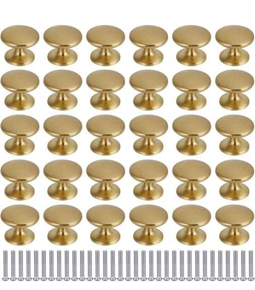 LOT 100 - New BIGLUFU Brass Drawer Knob, 30 Pack Brass Kitchen Cabinet Knobs, 1 inch Dresser Knobs Drawer Pulls, Gold Knobs Dresser Drawer Handles Knobs for Dresser Drawers