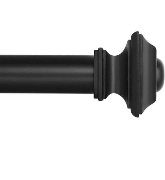 LOT 5 - Like new Ivilon Drapery Treatment Window Curtain Rod - Square Design 1 1/8 Rod. 72 to 144 Inch. Black. Opened box. NO SHIP NO HOLD